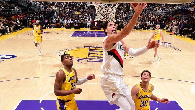 夏普单打得分,格兰特2罚全中,范德比尔特暴扣还以颜色。霍勒迪单打布朗尼得分,开拓者挑战判罚成功,克内克特2罚全中。霍勒迪、夏普与里夫斯各有冲击篮下打进,克内克特中投得分,阿夫迪亚2罚全中,紫金军团请求暂停。里夫斯命中续命远投,波特兰请求暂停。卡马拉空切上篮得分,克林根空接打进,开拓者领先14分得以锁定胜局。比赛仅剩74秒,杨瀚森被替换上场,里斯与克内克特对射远投,时间走完。最终,开拓者以122比108完胜湖人。